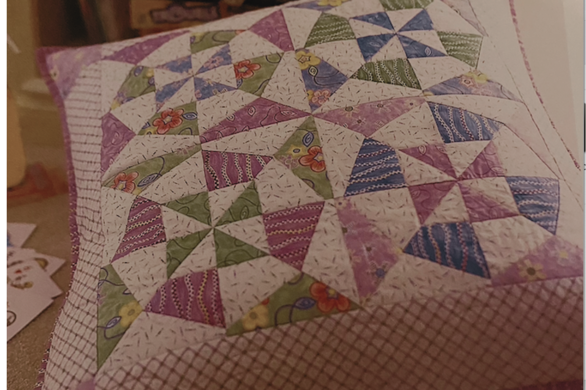 Insert the pillow form through the back opening. Congrats you have finished your quilt floor pillow.